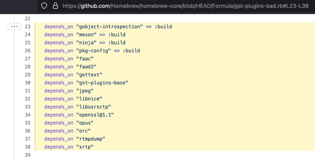 Ok, now I know what might be causing the SRT plugin to not be available on my GStreamer’s brew installation. In order to confirm that, I checked the Homebrew formula for its dependencies.